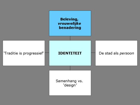 De stad heeft uiteraard nood aan overzicht, herkenbaarheid, monumenten. Maar evenzeer aan geborgenheid, aan het ‘verdwijnen’ in de stad… De laatste decennia heeft men evenwel te veel aan steden gewerkt vanuit dat ‘mannelijke’ standpunt. Ons inziens is er dringend nood aan vrouwelijk tegengewicht.