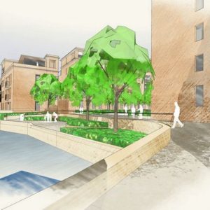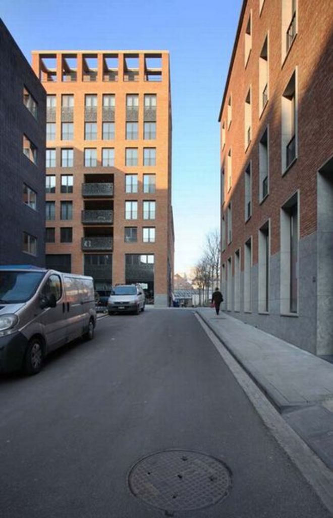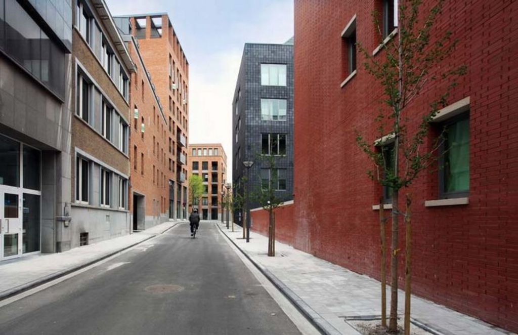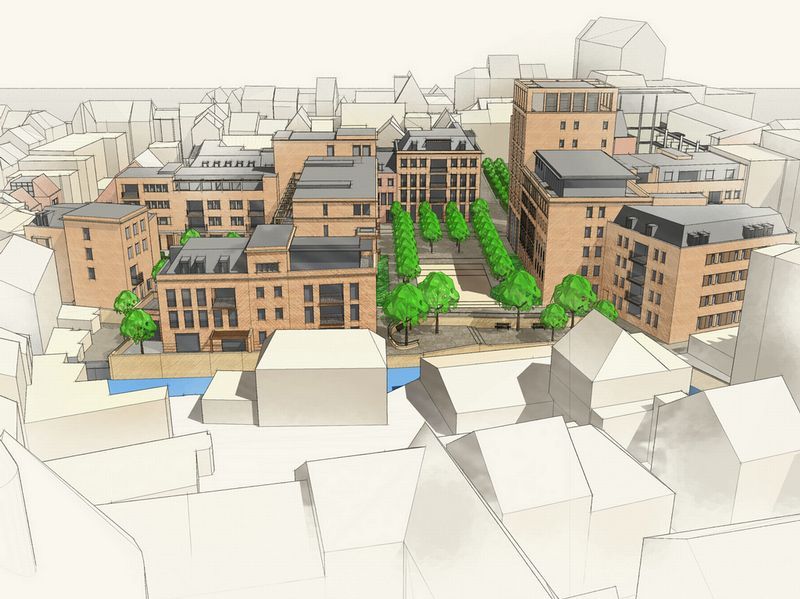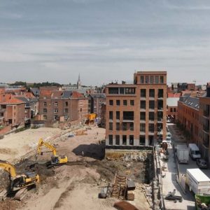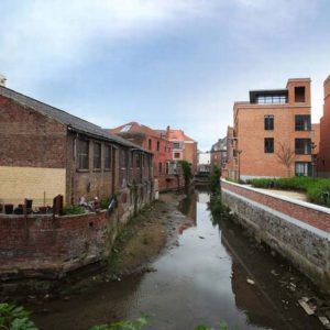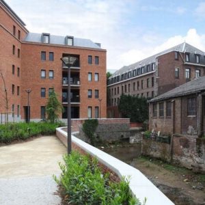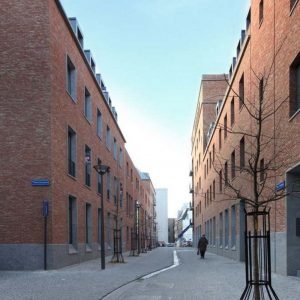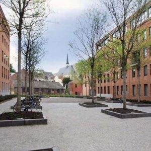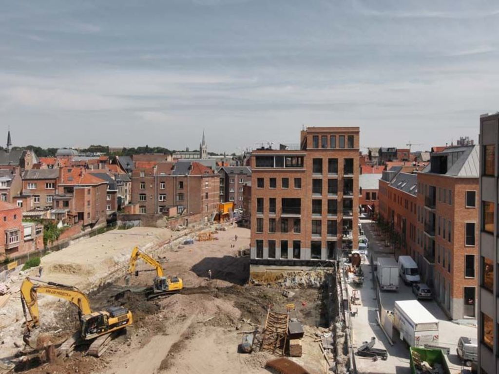Stedelijk wonen rondom een 'piazza' aan de Dijle. I.s.m. A33-architecten voor de architectuur en Wirtz International voor de buitenaanleg.