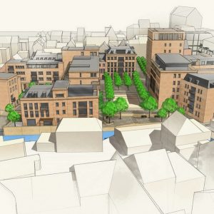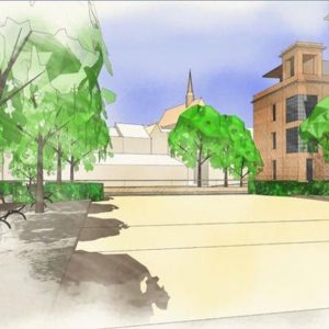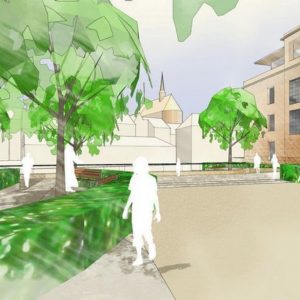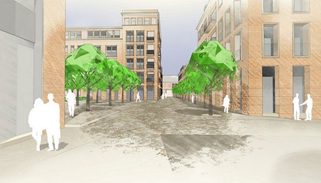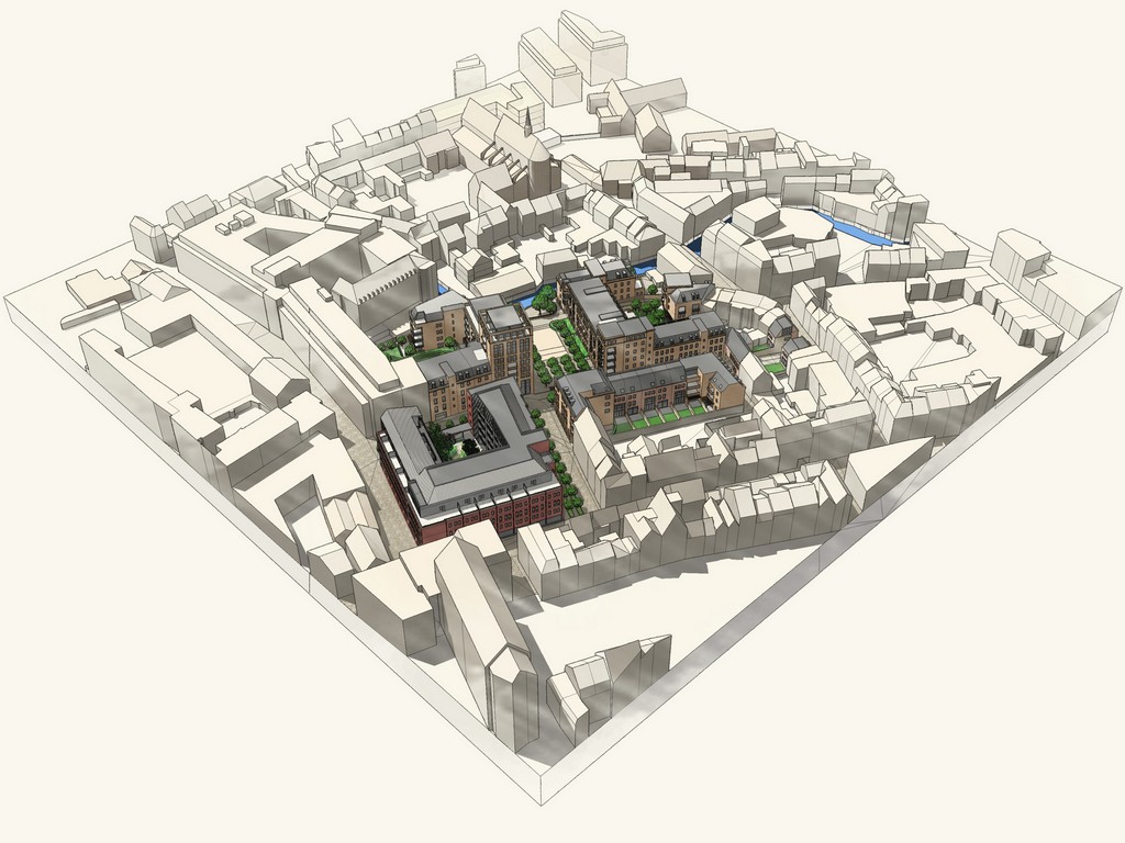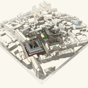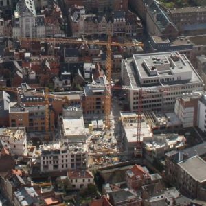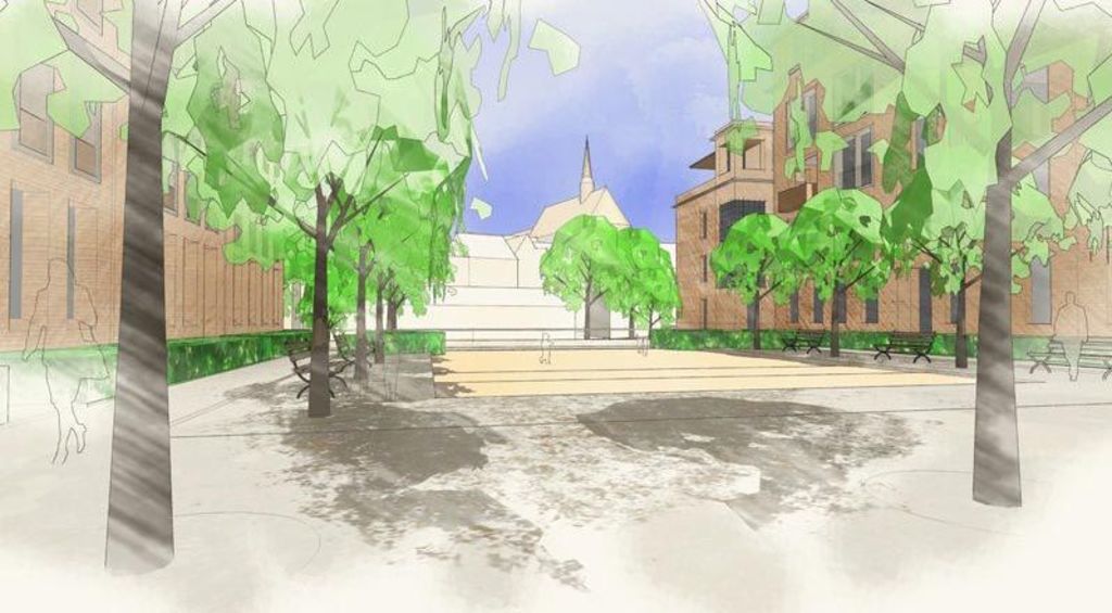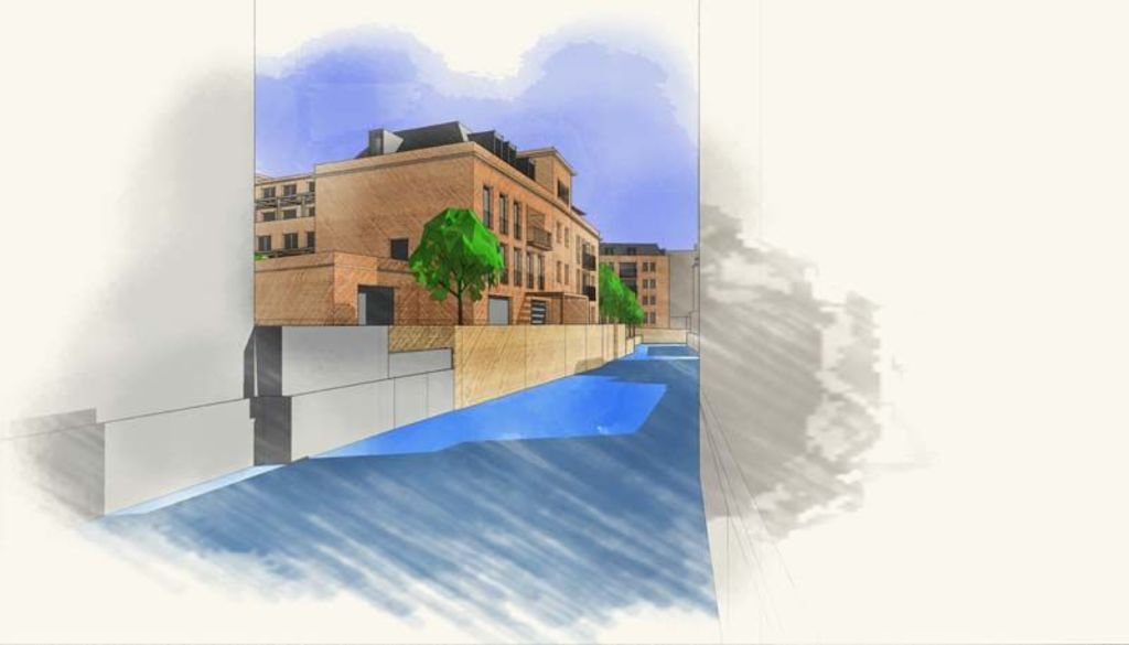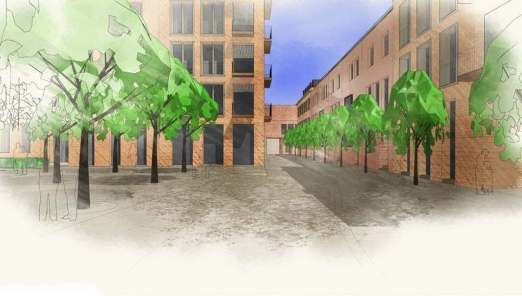 Stedelijk wonen rondom een 'piazza' aan de Dijle. I.s.m. A33-architecten voor de architectuur en Wirtz International voor de buitenaanleg.