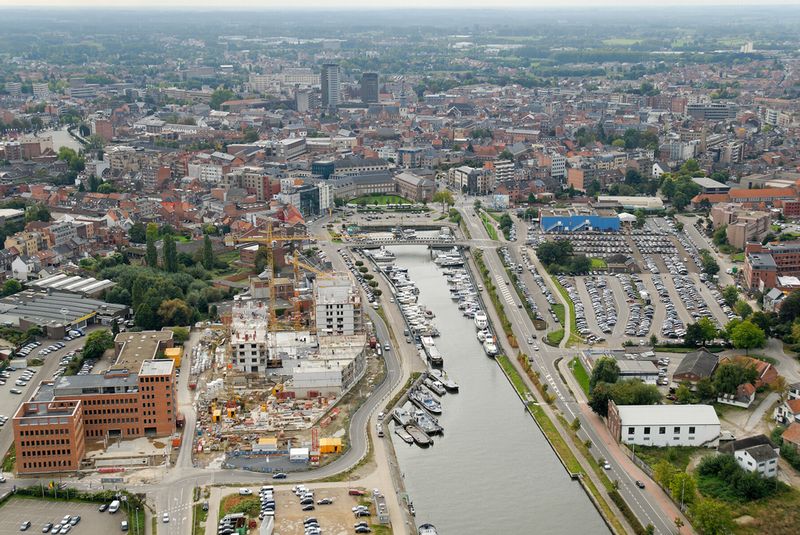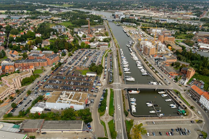 De promenade sluit aan op het niveau van de Groene Boulevard. De link tussen het nieuwe kwartier en de binnenstad is een evidentie. Enerzijds door de stedenbouwkundige aansluiting via het Molenpoortplein en het aanbieden van een boeiend commercieel stadskwartier.